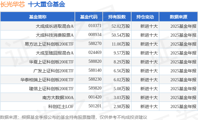 根据2025基金年报公募基金重仓股数据,重仓该股的公募基金共20家,其中持有数量最多的公募基金为大成基金的大成成长进取混合A。大成成长进取混合A目前规模为5.92亿元,最新净值1.9169(2月11日),较上一交易日下跌1.22%,近一年上涨55.3%。该公募基金现任基金经理为杜聪。杜聪在任的基金产品包括:大成科技消费股票A,管理时间为2024年12月27日至今,期间收益率为58.17%;大成至臻回报混合A,管理时间为2025年6月25日至今,期间收益率为35.38%。